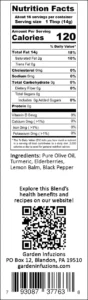 Discover a restorative, plant-forward infusion crafted to bring calm and comfort to your daily routine. This blend begins with antioxidant-rich extra virgin olive oil (polyphenols ~250 mg/kg) and marries Turmeric and Ginger for time-honored inflammation support, balanced by the gentle ease of Lemon Balm and the warming spice of Ceylon Cinnamon. A dash of Black Pepper enhances absorption, while bright notes of Lemon Peel lift the flavor. Use daily by the spoonful, drizzle over food, or stir into warm beverages for a smooth, flavorful way to support natural balance and mobility.