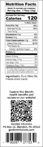 Elevate your culinary creations with the rich, savory taste of our Garlic Infused Olive Oil. Made by infusing high-quality olive oil with fresh, aromatic garlic, this oil captures the essence of garlic in every drop. The result is a robust, flavorful oil that adds depth and warmth to pasta, grilled meats, roasted vegetables, and more. Beyond its bold taste, garlic offers numerous health benefits. Itโs rich in antioxidants, supports heart health, and has powerful anti-inflammatory properties. Whether youโre preparing a classic Italian dish, drizzling over pizza, or simply using it as a dipping oil, our Garlic Infused Olive Oil is a versatile and essential addition to your kitchen.