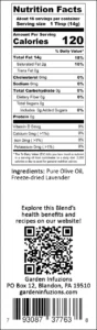 Crafted with the delicate aroma and flavor of real lavender, this unique infused olive oil brings a soothing, floral elegance to your kitchen. Inspired by centuries of herbal tradition and culinary innovation, this blend is designed to elevate everything from baked goods and marinades to artisan drinks and glazes. The naturally calming properties of lavender pair beautifully with the richness of olive oil, offering a balance of taste and wellness. Whether youβre baking lemon-lavender cookies, drizzling over fresh fruit, or adding it to tea and tonics, this blend provides a delightful sensory experience.