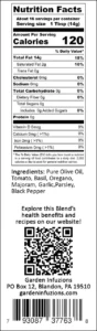 Garden Infuzions New Jersey Tomato Basil Infused Olive Oil Nutrition Label